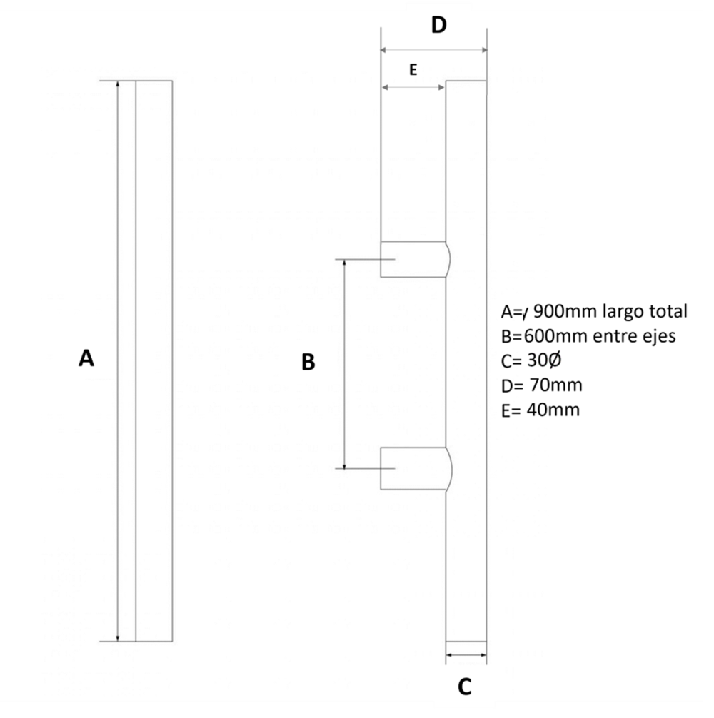 MEDIDAS: Medida: 30mm.Ø X 900mm. largo y 600mm. entre ejes