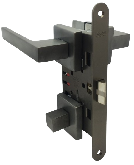 BAÑO: Par Manillas QMini Grafito PVD, Seguro Emergencia y Cerradura AGB (Italia)