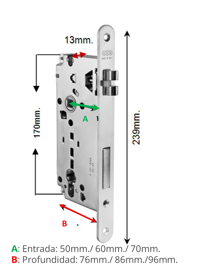 -Entrada 70mm. Profundidad 96mm. Largo Total 239mm.