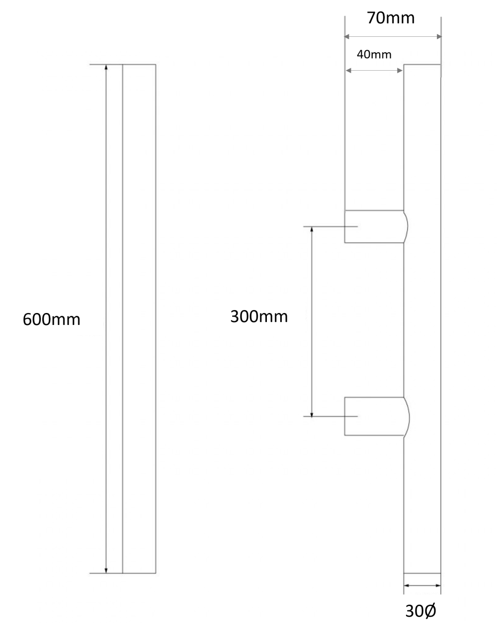 MEDIDAS: Medida: 30mm.Ø X 600mm. largo y 300mm. entre ejes.