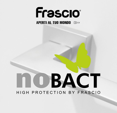 NO BACT es el nuevo tratamiento protector con acción antibacteriana a base de iones de plata , aplicable a toda la gama de manillas Frascio. Una solución contra virus y bacterias en los entornos en los que vivimos y trabajamos. El tratamiento antibacteriano contrarresta permanentemente el crecimiento de patógenos en el mango, como lo demuestran las pruebas directas y de laboratorio según las normas de certificación ISO 22196.