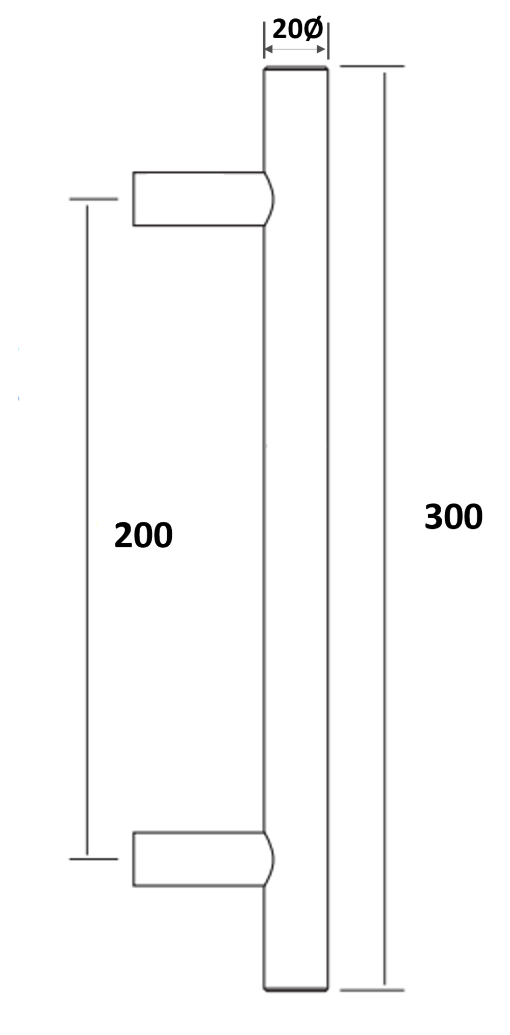 MEDIDAS: MEDIDA: 20mmØ. x 300mm. Largo Total y 200 entre ejes.