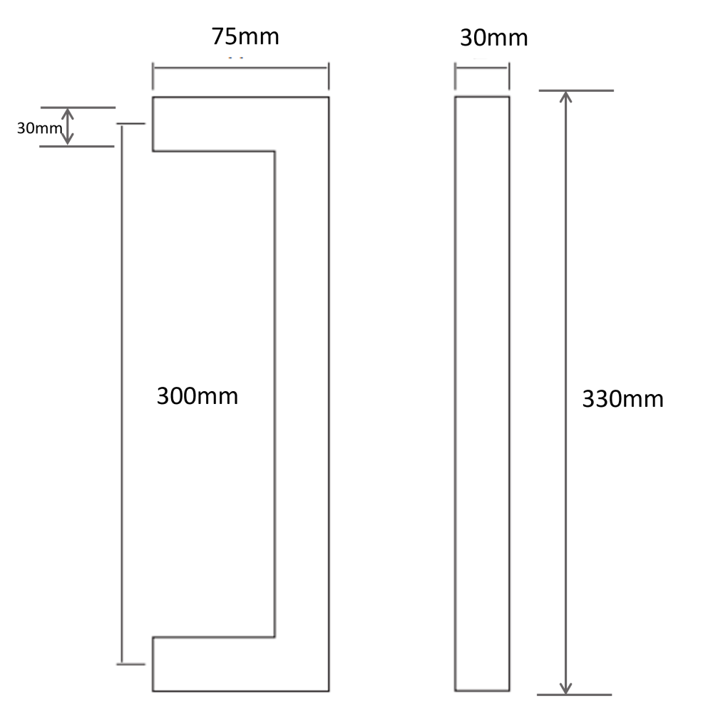 MEDIDAS: 30mm. x 30mm. largo total 330mm. y 300mm. entre ejes.